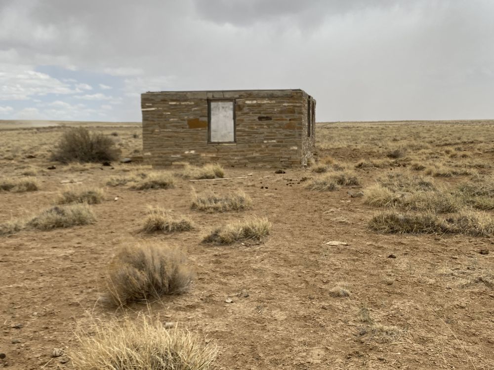 接近步道口时看到路边有三处废弃的砖房,当时狂风大作风沙满天,天地一片混沌。