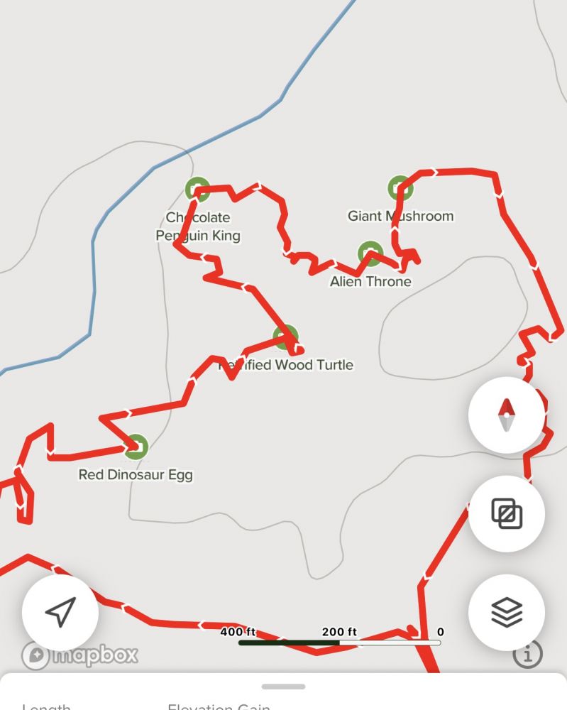 梦之谷是必死台的近邻,开出土路到371大路后继续南下左拐到7650,然后右拐上7870即可到达。这一带信号很弱,如果不能用古狗导航,可以打开Alltrails 的 off line trail 的地图,蓝色的圆点是汽车的定位,蓝点跟踪车的位置,能判断出车和步道口方位,车动蓝点随之移动,朝着步道口方向开不会走错路。这一带不仅网络信号时有时无,GPS信号也不稳定,Alltrail 本来可以在offline 地图上查看步道上的照片,也可以把喜欢的地点拍照片定点。这些功能在此地失灵,好在还能显示步道图和走过的路线不必担心迷路。