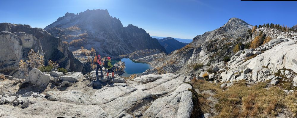 西雅图机场走廊有这个湖的风景照,来到魔幻仙境才知道这幅照片的出处。这是步道上最后一个高山湖,余下的步道就只剩下浓浓的秋色。