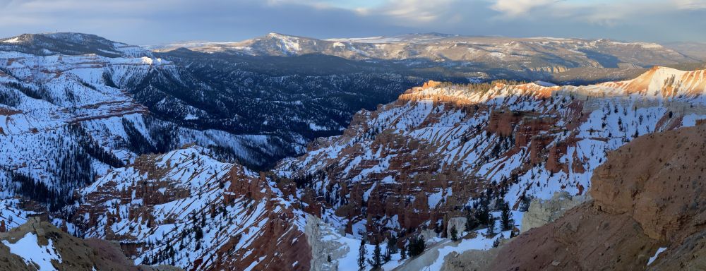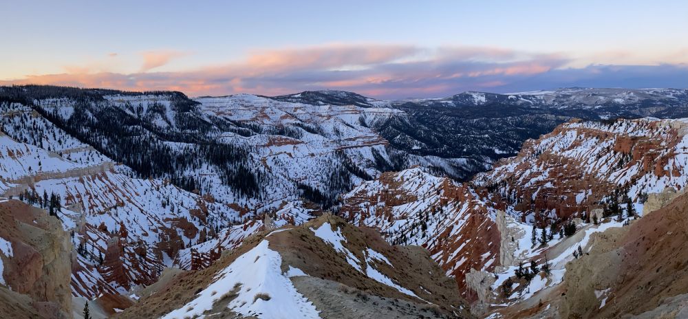犹他共有7个国家纪念碑,雪松休闲国家纪念碑常年开放,其实冬季开放的景点有限,路通到日出观景点 (Sunrise view point)应该得益于滑雪场,道路的积雪只清理到此,而这个景点就在滑雪场的尽头。