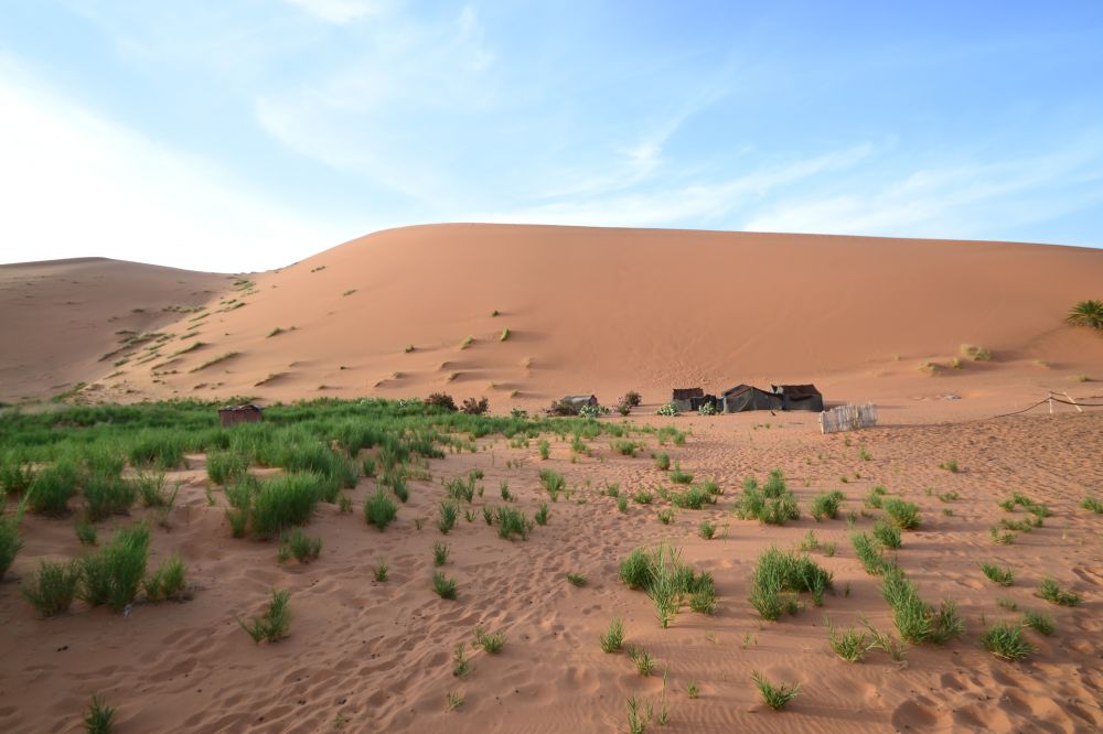 五點鍾多,沙漠導遊在帳篷外以拍掌聲叫醒大家去看日出。
