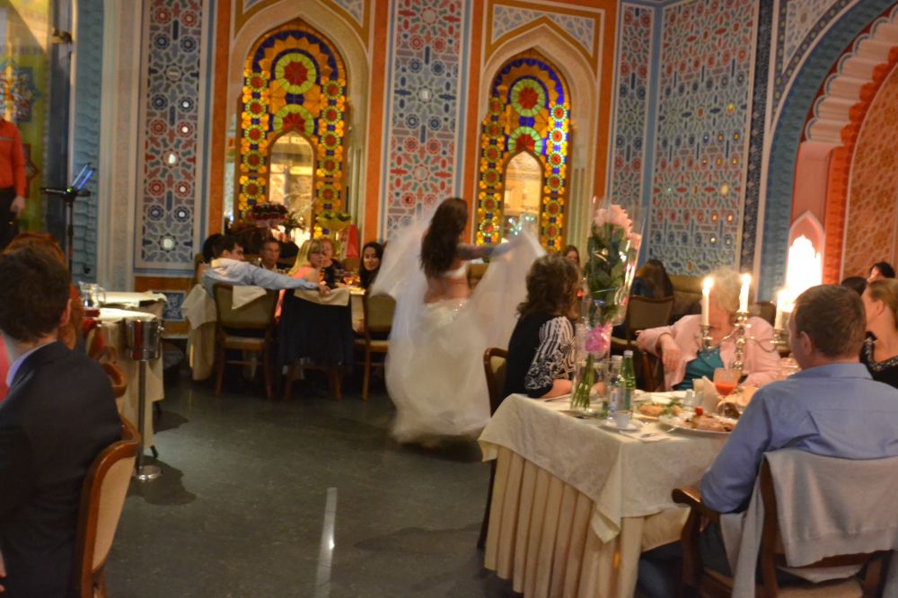 我们在土耳其的一家餐馆吃饭,还看到了肚皮舞表演。在每个舞蹈的间隙间,DJ放音乐,就餐的客人们就纷纷起来翩翩起舞。虽然音响系统有待提高,可人们还是玩得很high. "班长”说,俄罗斯人的自娱自乐的精神很值得我们学习。在俄罗斯,人们生活得挺好的!