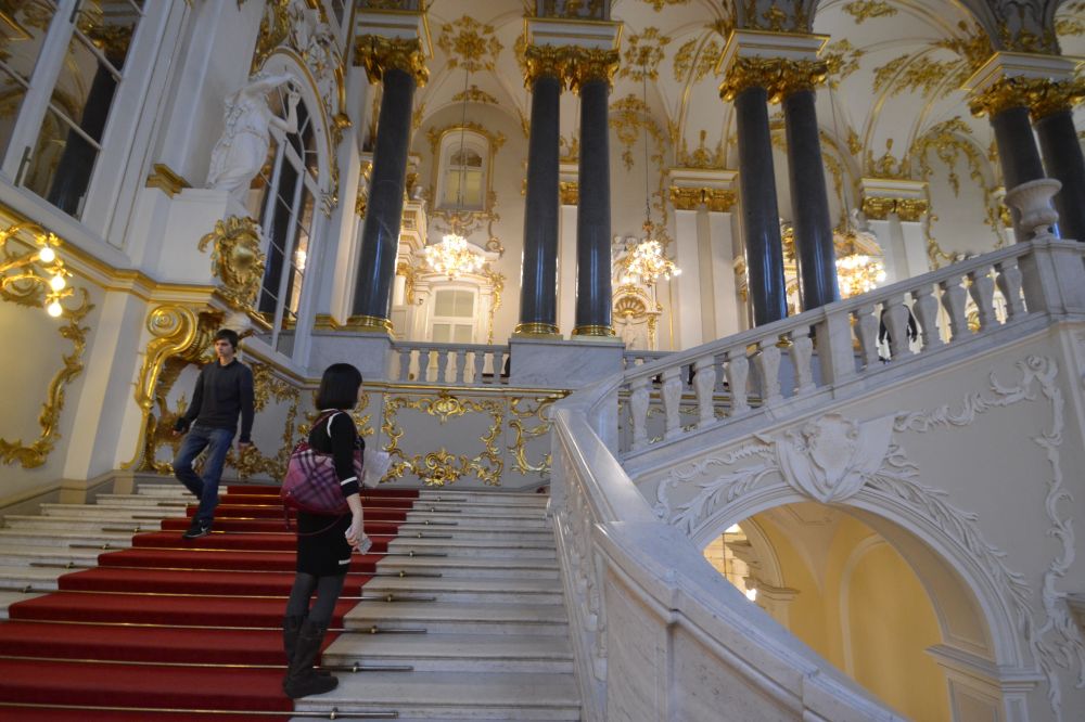 我們是最後一天去的夏宮,看完夏宮就直接到機場飛回阿姆斯特丹。從酒店到夏宮,我們是打的士過去的,十二月的聖彼得堡很冷,不想那麽麻煩,坐車轉來轉去。俄羅斯的交通示意圖不清楚,而且路人很多時候也不講英語。我們叫酒店幫找個的士司機送我們去夏宮,如果要等待的話還要另外收費。所以我們隻要他送我們去。到了那裏,我一看那情況,並不是隨便可以叫到的士,交通也不方便,哪裏買票?並沒有明顯的標誌。我才問他可不可以等我們出來再送我們去機場,沒想到他還真的願意等,而且並不收我們的等待費用。從夏宮到機場大概十幾歐,我們也不用拉著箱子進去。酒店幫訂的的士還是可以相信的。所以從酒店到夏宮,看完夏宮到機場,大概要四十歐左右。我覺得還是值得的。