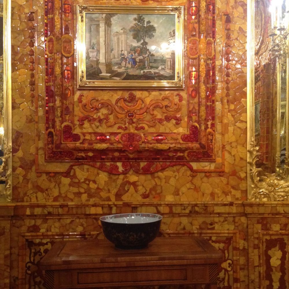 這是1716年普魯士的第一代國王送給彼得大帝的禮物-琥珀屋, 1717 年彼得大帝就把它放在聖彼得堡。