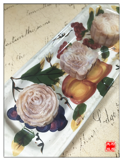 这次做了抹茶翡翠冰皮,可可大理石纹冰皮,还有原味汉白玉冰皮。先上片片,再给原味的方子。