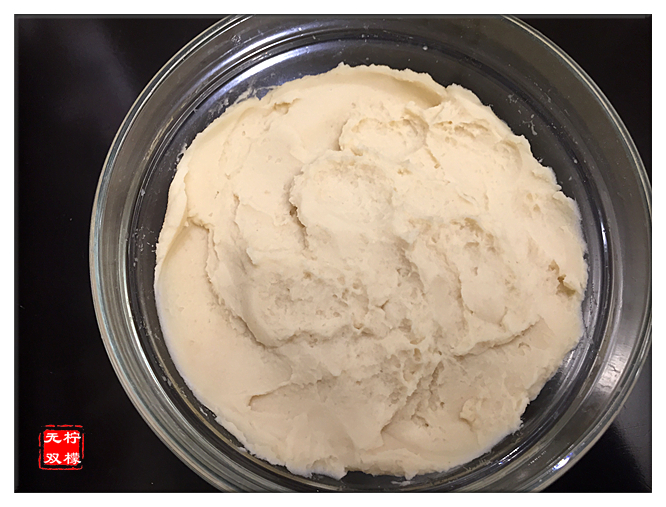 1。将制作冰皮的所有干性材料倒入大碗混合均匀