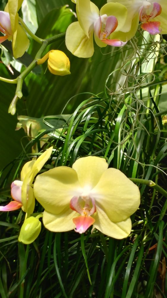在"Green House"里,只见里面湿汽缭绕。在那里的温度和湿度还有不强的阳光等等都是适合兰花生长所具备的条件。所以即使是在十月中旬期间,这里的兰花还是开得那样艳丽,那样的丰富多彩。在大棚里,有些兰花被种植在树上,有些兰花则被种植在花盆里或者在地面上。辛勤的园工们创造出了小山的场景。绿叶红花,滴哒的落水声都烘托了一种兰花美丽的意境。