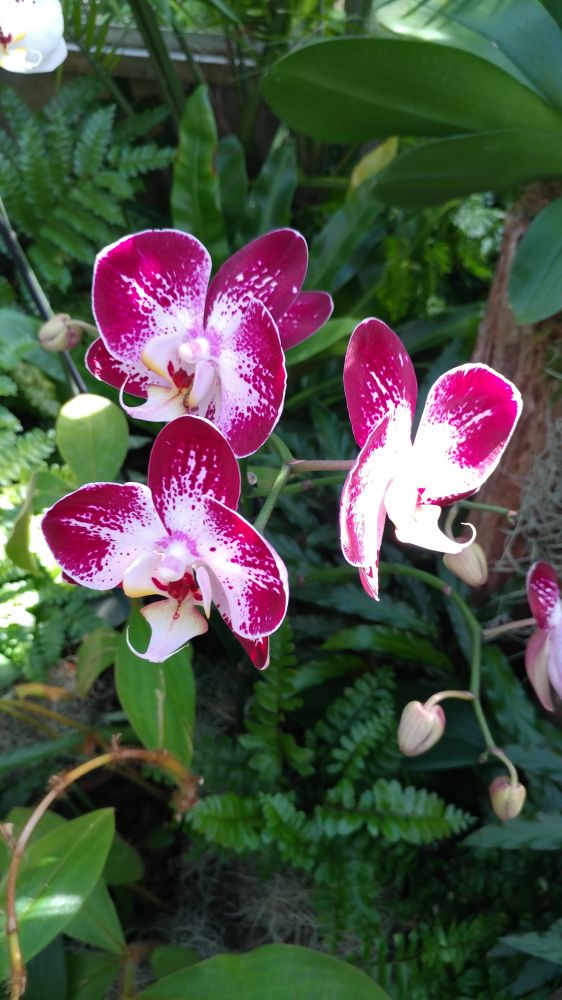 我们一边欣赏兰花,一边拍照着。每次拍花的时候,我都会很仔细的拍照着,唯恐漏掉任何一个。在这个热带植物园里,有展览花卉的地方,有餐厅,也有小卖店。在小卖店里面有画家画的兰花,工艺品,另外还有介绍兰花的养植书籍等。在花园里还有苗圃,在那里有辛勤的园丁们正在培育着各种各样的兰花。