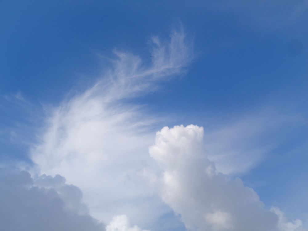 在另外的一边出现了一束怒发冲冠的云形,在旁边的一缕云似乎是在劝说。