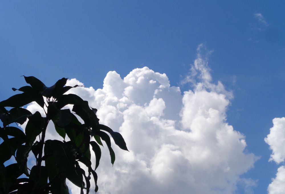 许是逆光的原因,树叶的颜色是很暗的,可是蓝天与白云的颜色却没有受到影响。
