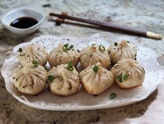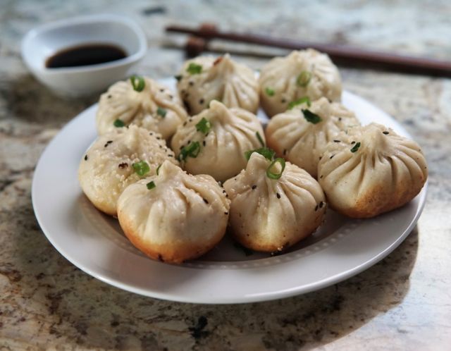 小笼包是用普通中筋面粉做小笼包的皮,加上自己熬的皮冻做的肉馅,