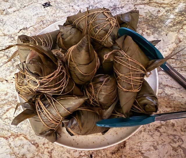 煮熟的粽子分享给上海邻居和朋友们,他们都说粽子很好吃~~