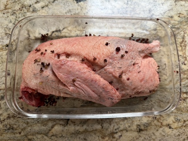 给另半个鸭做按摩(盐和花椒擦鸭)过几天做个盐水鸭