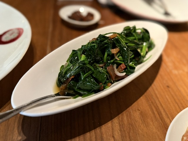 这款菠菜跟在美国牛排馆里的软啪啪菠菜不同,有点中式风格