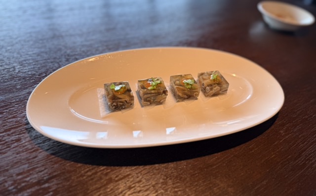 这是它家的招牌菜,是用糕蟹加糯米(糯米里有鱿鱼丝、香菇丝和肉丝)做成的
