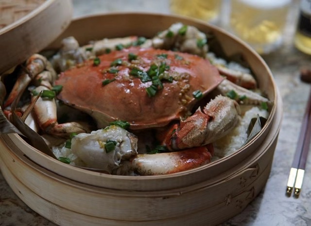 我曾经做过一道菜:温哥华蟹蒸糯米饭