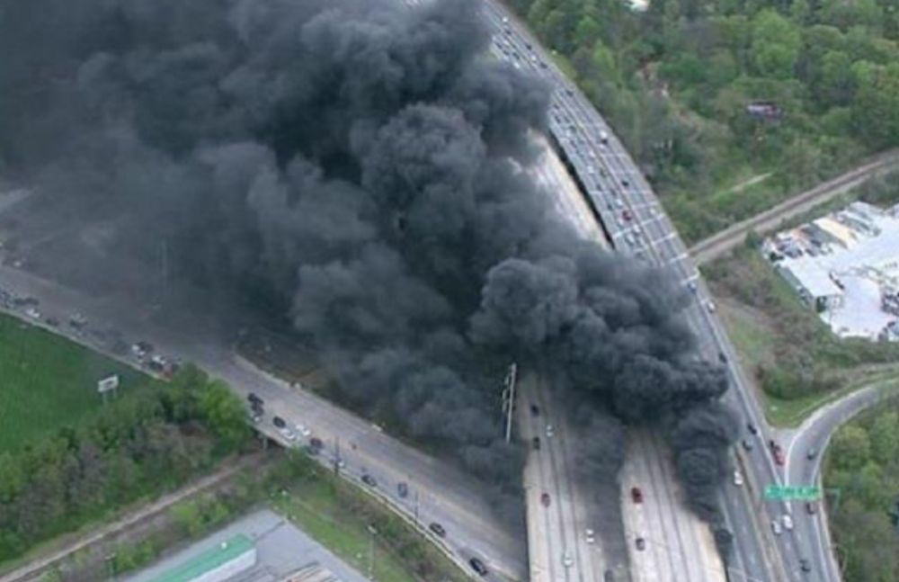周四下午六点过后,我开车行驶在I-85北向的路上。此时正是堵车高峰期,六车道高速公路拥挤但非常有序。车流速度在大约60迈时速。我在左二道上,眼见一股黑烟在右前方腾空而起,并且迅速迎面扑来。整个车流迅速慢下来,我前面的车无一例外地都是夺路而逃。我当时估计是有车祸发生,可能汽车燃烧起火了,也许会有爆炸危险。因为情况不明,我将车停在距冐烟处二十米的地方,喘口气,拍了段录像。我后边的车嫌我堵路,绕过我全跑了。等我回头再看的时候,一大群车停在我后边二十米处,将我远远的推在了最前方。我当时想,要么马上闯关,硬冲过去,像前边的几辆车一样;要么死等几个小时直到警察处理完事故。其实人在很多时刻的决心就是一念之差!我最后一咬牙猛踩油门立即闯关。有过漆黑黑的夜晚开车遇上大雾笼罩的经历,但那至少也有几米的能见度,慢速控车不会有危险。可是当我进入到黑烟弥漫的空间一个车身长的距离时,能见度骤然急降到零!周围漆黑一片,已如地狱一般。那种恐惧的感觉已经无法用语言来形容了。如果前面有车抛锚,我这边在加速逃跑,那除了连环相撞之外绝对不会有其它的可能了。谢天谢地,在进入黑暗三个车身长度后,先是看到了光亮,然后是奔逃的车流,这时候我知道自己已经安全脱险了。
