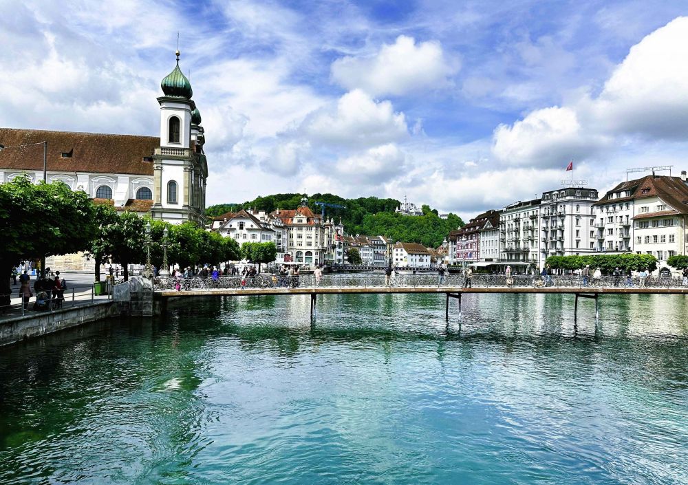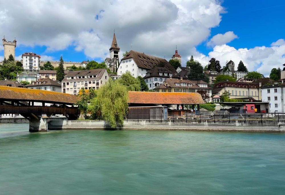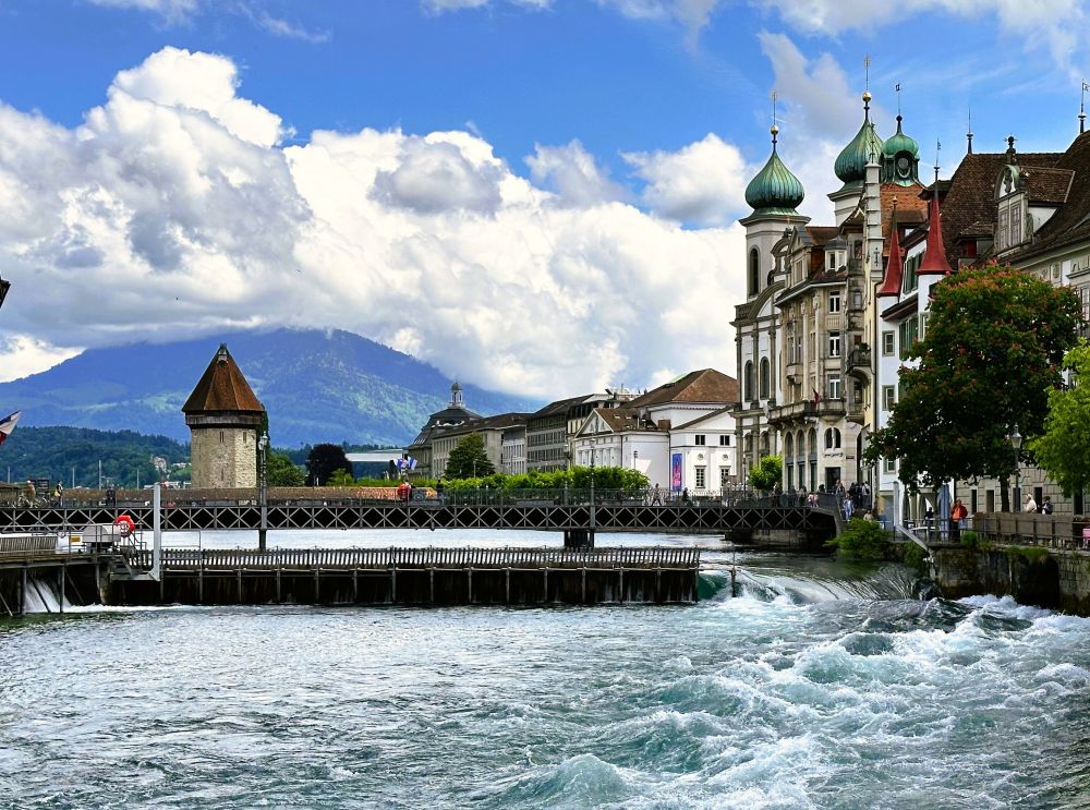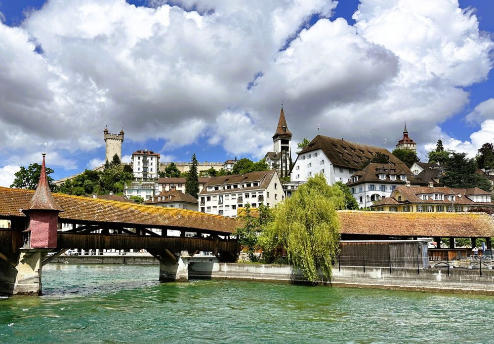 卢塞恩(Lucerne)是一座风景如画的城市,融合了湖泊、山脉和中世纪建筑,到瑞士是必到的旅游目的地之一。 必游景点包括了卡贝尔桥(Kapellbrücke), 垂死狮子像(Lion Monument)以及可俯瞰卢塞恩湖的皮拉图斯山(Mount Pilatus)。我们的时间有限,仅能在市内走走看看。廊桥与狮子山两处都在火车站附近,走路大概半个小时以内。