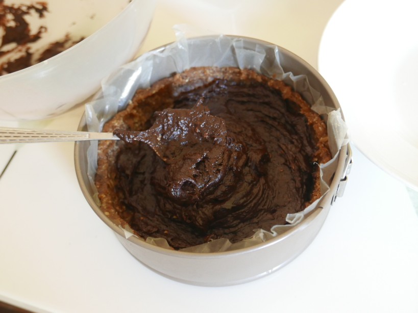 将摩丝料填入饼皮中,里面没有气泡,顶上抹平整.