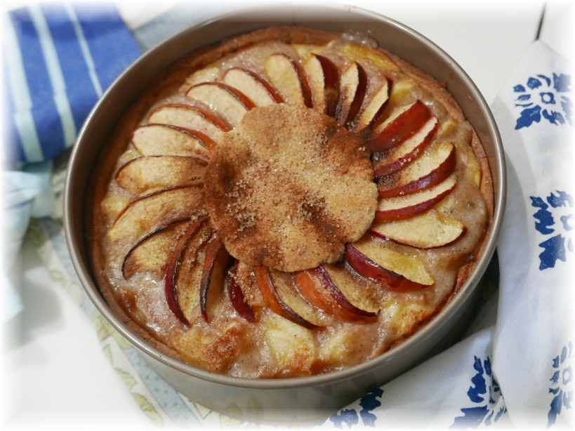 无非就是苹果,面粉(少量),鸡蛋,黄油(糕皮),(喜欢的话,橄榄油做馅料更低脂),盐,糖,牛奶,肉桂粉,等;