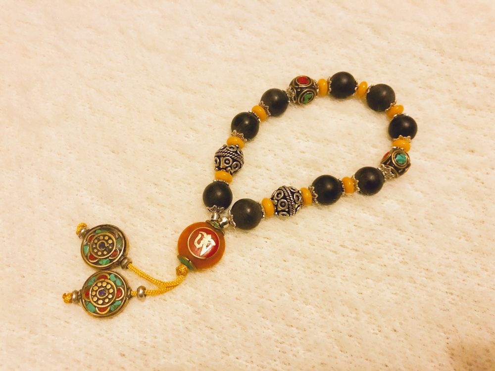 这是最近的不丹之行买的手链。不丹是在喜马拉雅山脉南麓的一个小王国,有着无以伦比的清新的自然环境,帅哥国王和美女王后,人民幸福指数超高。不丹信奉藏传佛教,因此很多物品,包括饰品,和藏族风格接近。