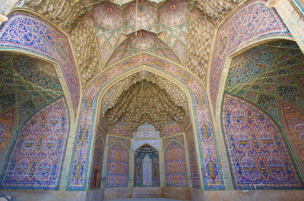 也叫"莫克清真寺" (Nasir-al-Mulk Mosque),完工于1888年,是Qajar王朝的君主下令修建。与伊朗多数蓝色调为主的清真寺不同,这里大量使用粉色调彩釉瓷和彩色玻璃,也因此而得名,被称为伊朗最美的清真寺。