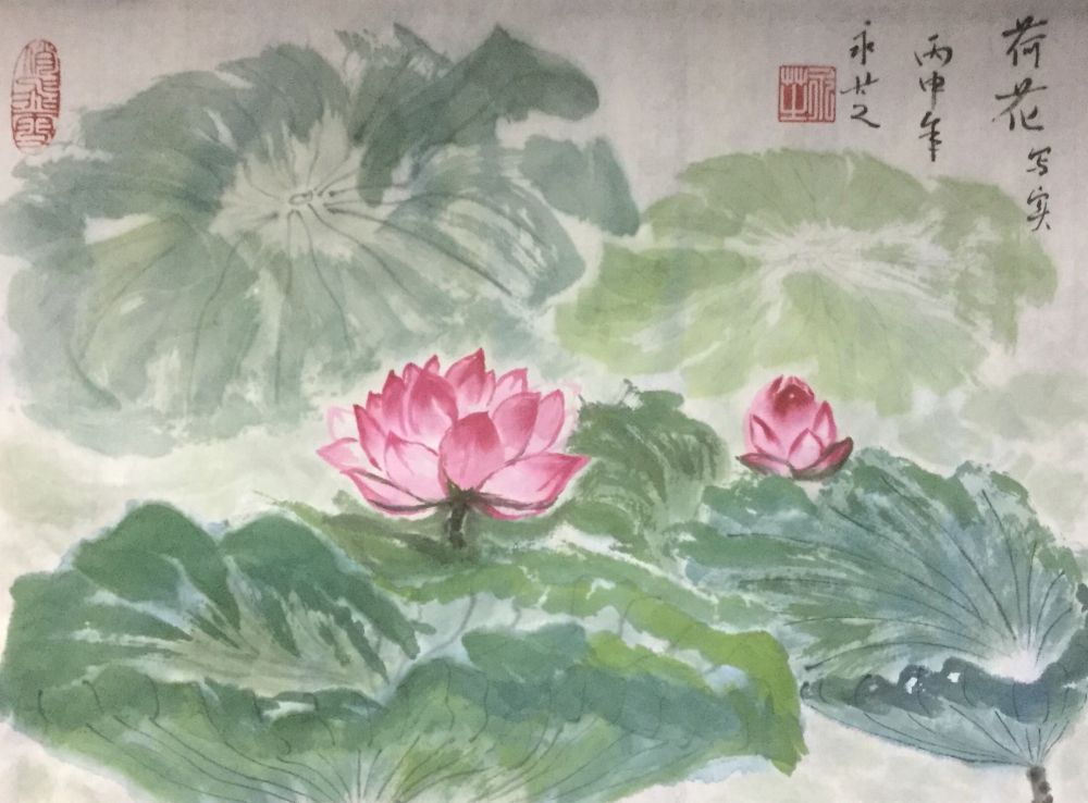 学画国画,画了三种不同的,姑且叫作荷花三弄吧。