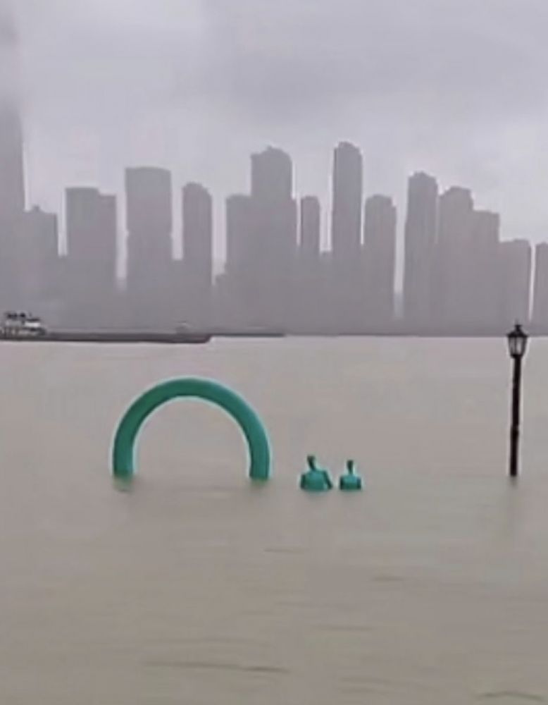 临江仙【江滩大水】20240703滚滚长江漂荡过,波澜漫上江滩。星光大道被滔湮。一家雕塑在,五口水中仙。
