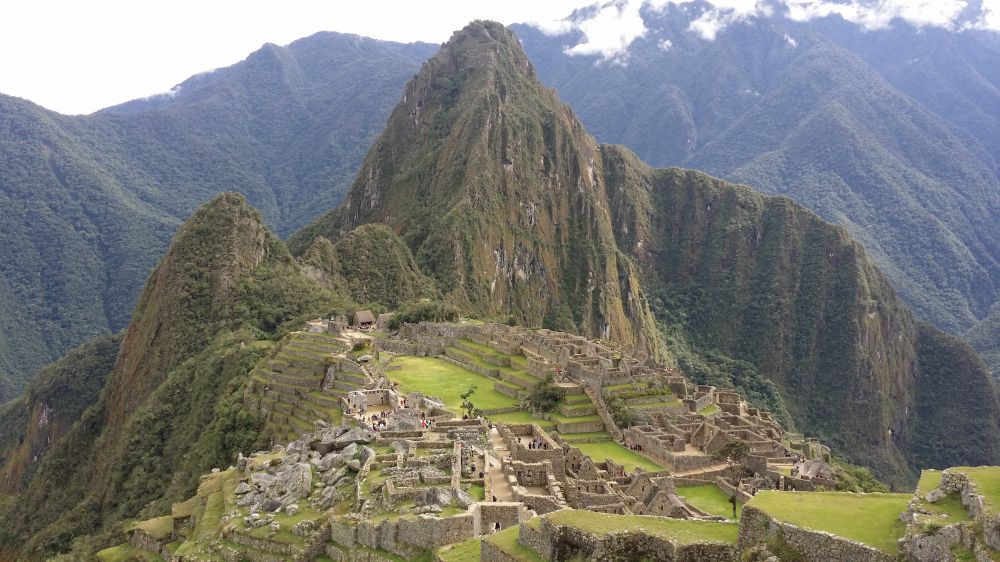 对面那座高山就是华纳比丘,一会儿我们就要爬到它的山顶,从上面俯瞰整个“圣城”了。要爬一个多小时。