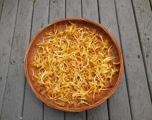 这是刚在院里摘下的金银花,晒干后可做金银花茶。