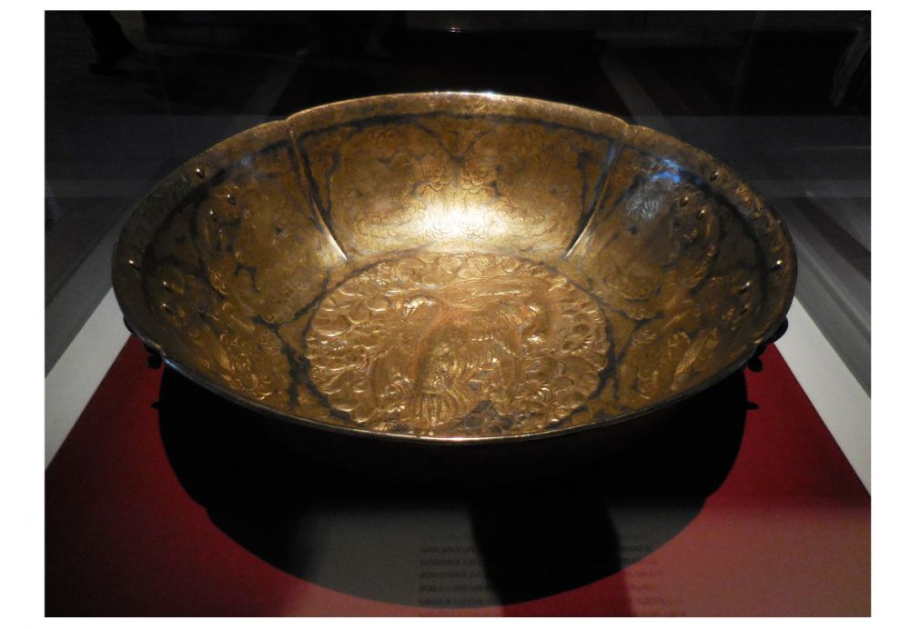 鎏金双鸳鸯团花大银盆 700 - 874