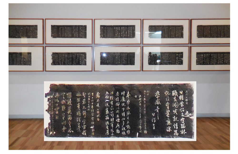 唐书法大家颜真卿、枊公权等人在临古的同时巨胆创新,不仅赋予篆书和隶书新的展现,更将楷书、行书和草书发展得尽善尽美让后人学习至今,这是书法拓片(将其中一幅放大置于前面)。