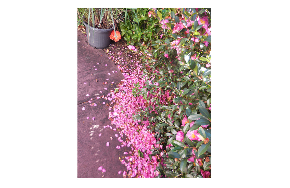 看茶花的美丽让人愉悦。现在,不仿换个位置换个角度,不看茶花开看茶花落,花落之美不逊色于花开之靓,花落是一道风景。