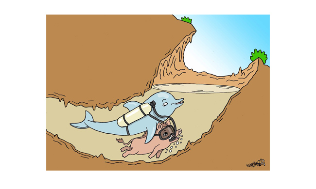 * * * 漫画“ 把猪带回家 ”,泰国漫画家 Sisida (在Facebook上的用户名)的画,以表达对来自各国的救援者的感谢。