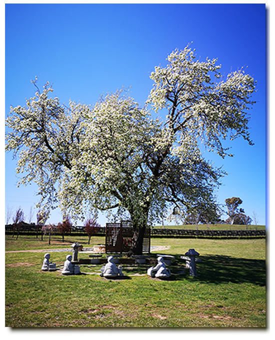 己亥年,周末春日,澳华人驱车寻乐。缘途行,忘路之远近。忽逢郁金香园,车停移数步,有梨树,芳草鲜美,花团锦簇。众人大喜,复前行,欲步园中。