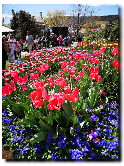 这些花照是在Bowral小镇郁金香花园拍的,它座落在悉尼西南200多公里之外,年度的郁金香花节就在这里展开,万紫千红的郁金香花造出《爱丽丝梦游仙境》的气氛,系列活动中还突出了“对抗脑癌”主题。