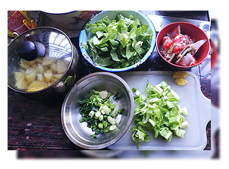 写(吃)、写(吃)!女主人一边招呼大家、一边把大碗米粉递到各人面前。