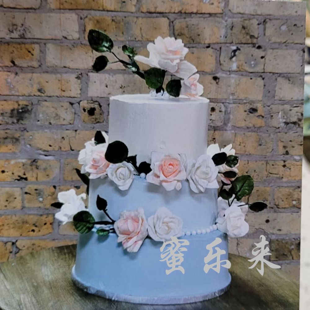 5:2021年第一次承担美国朋友婚礼蛋糕任务。做出来的翻糖花效果很满意,很多朋友都以为是真花。婚礼总人数80多人,除了我们一家,全都是美国朋友们。我比传统美式蛋糕减少了糖的用量,比传统亚洲口味偏甜一些。客人们反应非常好。