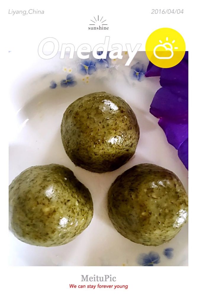 在我的家乡,清明前后,有一种学名叫鼠曲草的野菜,我们溧阳人称毛鼻鼻草,清明草,绒毛草。这草长在田埂边,山坡上,蓬松松毛绒绒,顶上开着小黄花。用毛鼻鼻草做的团子和饼子实在诱人,里面塞满了甜甜的豆沙,咬上一口:软、糯、甜、香,全是童年时的甜蜜回忆。这次从中国带回来了同学去年清明前自己亲手挖的,洗干净后剁碎再冷冻保存的毛鼻鼻草。那已经不仅仅是为了吃,更是那份浓浓的友情和满满的感动了。家乡的毛鼻鼻草哟,就这么跟着我一路香飘到异国。。。