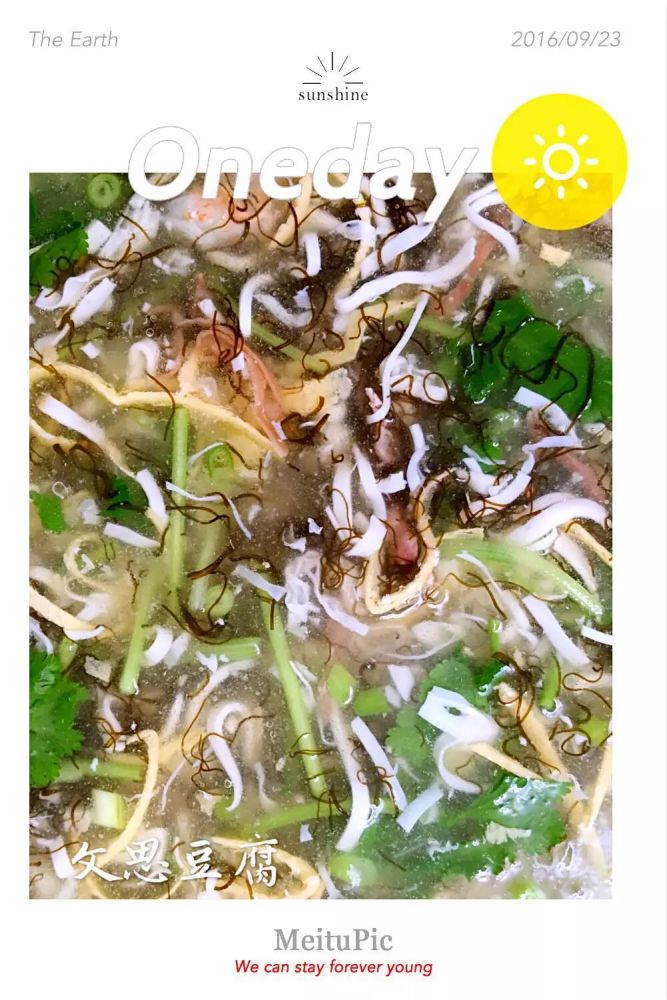 这道汤羮五彩嫔纷,豆腐丝鲜嫩滑爽,入口即化,蟹肉鲜美无比。配料清新艳丽,汤汁清醇滋补,令人回味无穷。。。