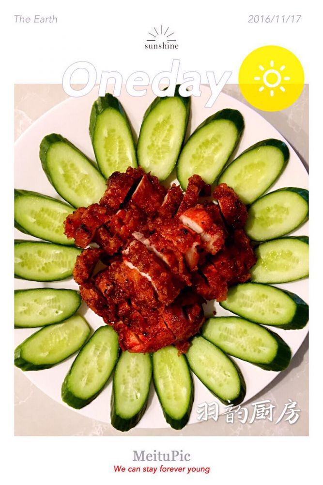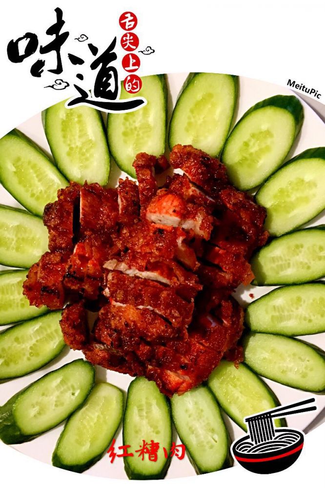 4,乘热把红糟肉切片摆盘,食用时可搭配黄瓜片。