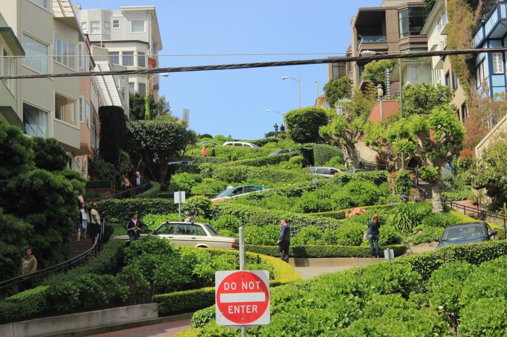 4. 驱车下LOMBARD ST是一个驾车人喜欢接受的一个挑战,骑自行车驶下也要有很好的平衡能力,因为你没法快。可惜我这次是步行来的。