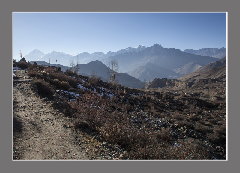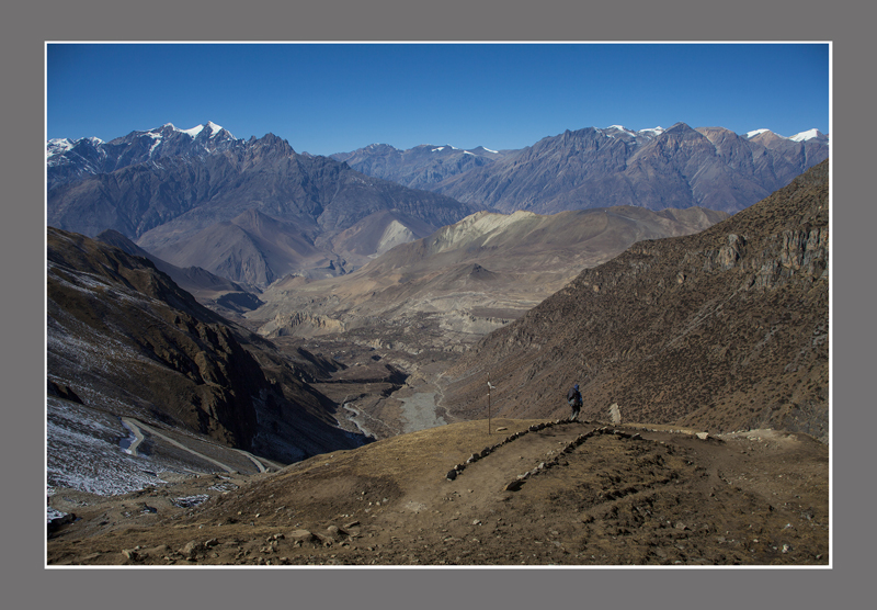 河谷长长地伸向远方.我们在Marpha的地方结束徒步,乘车前往博卡拉.