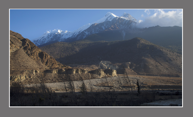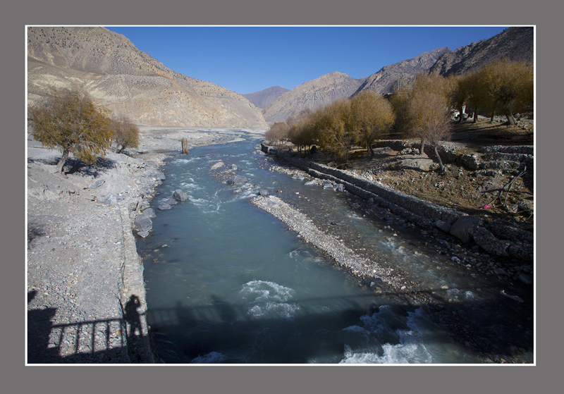 穆格蒂纳特镇处在木斯塘地区的边缘,是印度教的宗教圣地,也是一处大山中的聚居点,我们在此处停留一宿后,又沿着Kali Gandaki河谷向下,在道吉拉里之下一路向下都有宽阔的河滩,十分大气,河谷沿线地区有许多聚居点,也相对的富饶... ...
