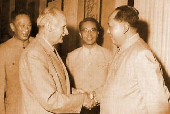 (1960年5月,二战名将蒙哥马利来华访问,在受到毛泽东的亲切接见。杜聿明在场。我不敢肯定照片左一是不是杜聿明将军, 现在看这照片还以为是孙红雷假扮的呢)