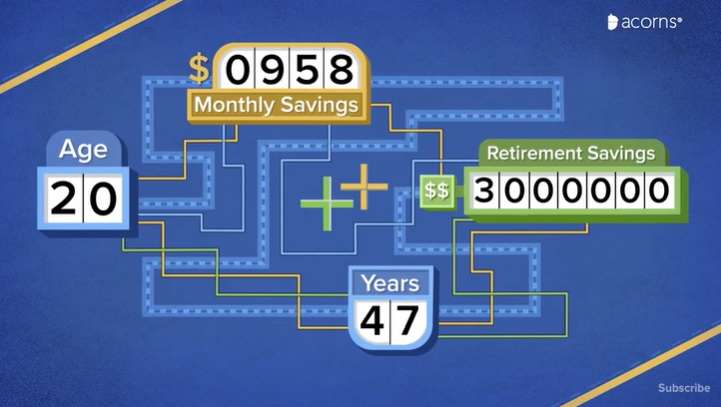 按照6%的年收益,如果20岁开始存,需要每个月存$958, 67岁时能有三粒米。