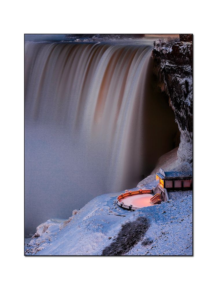 今年是暖冬,但这天却是低温。刚出门时零下27度,体感温度零下38度。凌晨4点出发,得此一幅,可谓呕心沥血。Niagara 大瀑布源源不断洪流夹杂着的大大小小冰块滚滚而下,响声轰鸣,震耳欲聋。刀割般的北风刮得让人喘不过气来,却见瀑布边上的小屋发出了温暖的灯光,可能是给早起的摄影人一点心灵的慰籍吧。