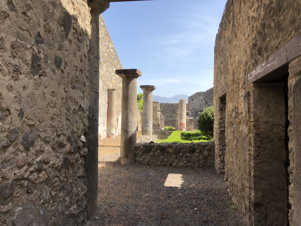 去庞贝是今年四月的事情。跟近些年才听说的马丘比丘不同,庞贝是我们小时候就耳熟能详的名字。庞贝是公元前几百年建立的古罗马城市,背靠维苏威火山,面朝那不勒斯湾,交通方便,商业发达,是一个吹拂着地中海的暖风,沐浴着南欧灿烂阳光的温柔富贵之乡。公元79年,维苏威火山爆发,庞贝城被好几米深的火山灰覆盖,变成一片废墟,很快被人遗忘。