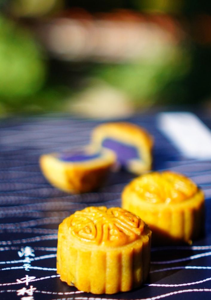 5 做的极其成功的紫薯馅月饼:饼皮柔软,馅儿香甜。紫薯煮熟,压泥,加少许糖和油略炒干,成馅。