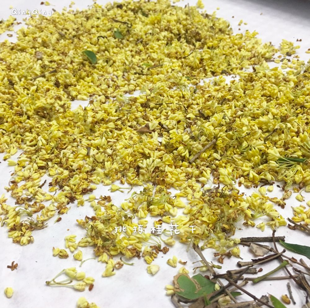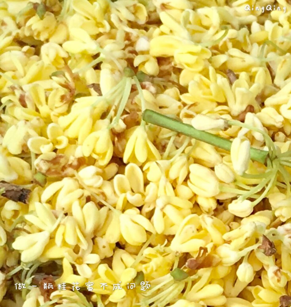 桂花是桂花酿的原料之一,采桂摘后,挑拣、晾干,分层倒入蜂蜜,密封瓶口就可以制作出桂花酿。